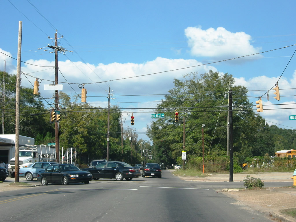 Congress Street west at the five point intersection with U.S. 45 (Saint Stephens Road) and Catherine Street. 30" signals remained in service here until late 2008. 10/29/03
