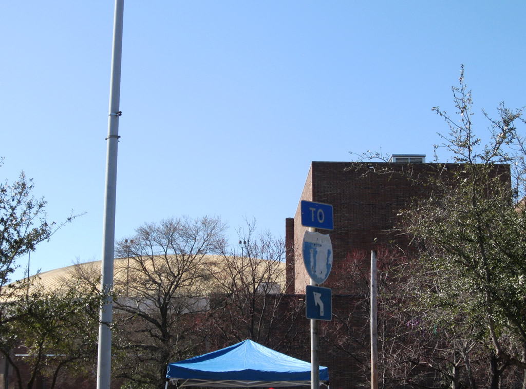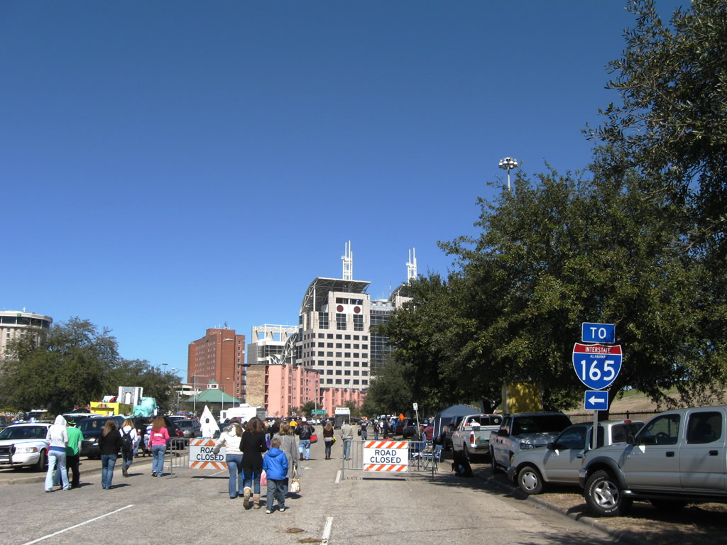 Interstate 165 trailblazer posted at the exit of the Mobile Civic Center parking lot for Jackson Street north. 02/06/10