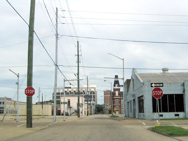 Jackson Street south at St. Louis Street outside Downtown Mobile. St Louis Street and Joachim Street, one block to the east, represent the historic U.S. 90 alignment between Broad and Conception Streets. 06/13/04