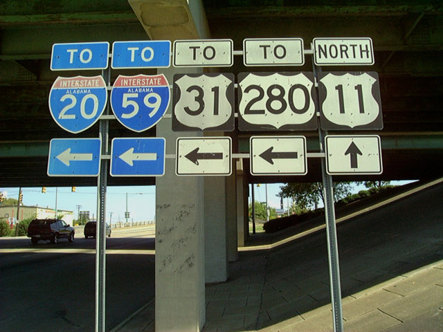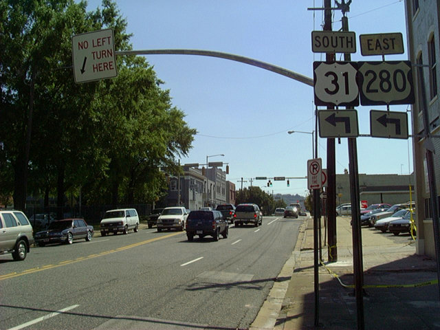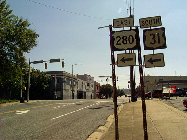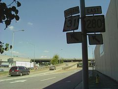 24th Street south ahead of 3rd Avenue N and the entrance ramp for U.S. 31 south / U.S. 280 west. The ramp is located a half block to the east. 10/01/03
