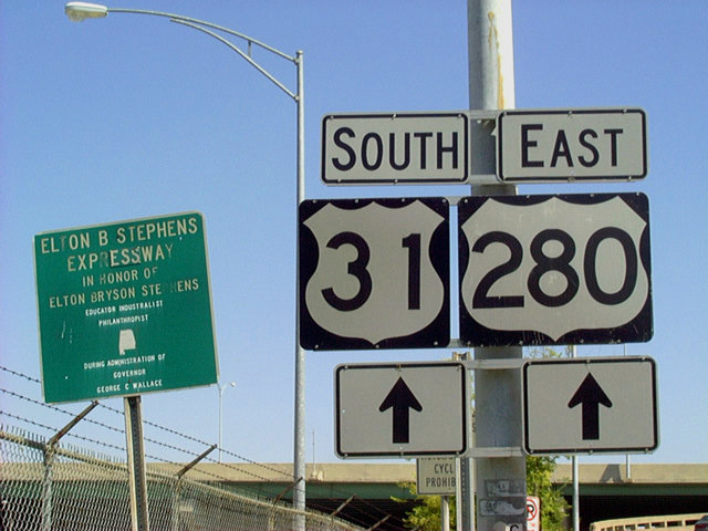 A sign posted at the 3rd Avenue N entrance ramp to U.S. 31/280 south honors Elton Bryson Stephens, a local city advocate and leader. 10/01/03