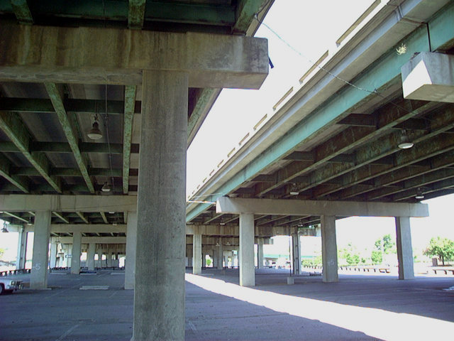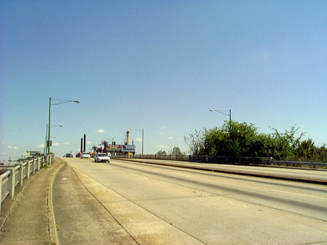 The viaduct along 1st Avenue N spans a Norfolk Southern Railroad line through industrial areas east of 26th Street and the Elton B. Stephens Expressway. The elevated roadway extends to 33rd Street. 10/01/03