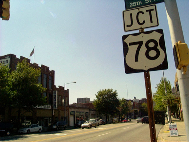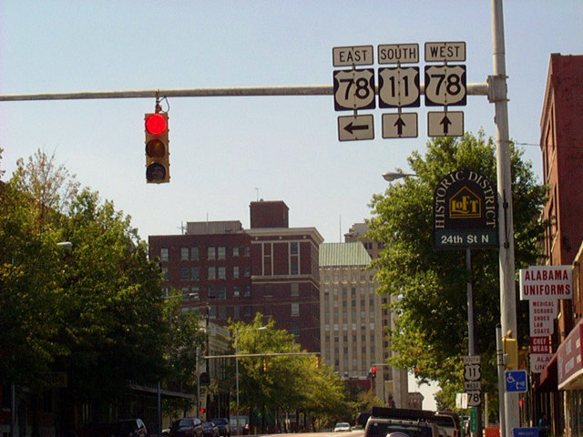 U.S. 11 south and U.S. 78 west combine along 1st Avenue N between 24th Street and 14th Street. 10/01/03