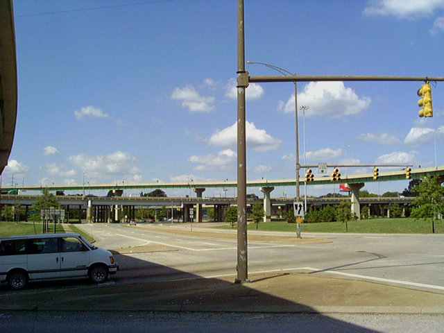 Flyovers linked I-59/20 to both the Red Mountain Expressway south and Carraway Boulevard (U.S. 31) at the intersection of 6th Avenue N and 26th Street. 10/01/03