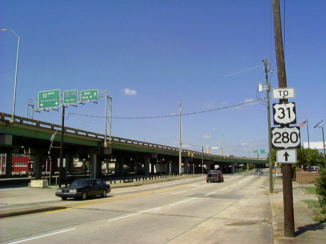 26th Street at Carraway Boulevard and the Red Mountain Expressway. U.S. 280 eastbound begins along the Expressway south. U.S. 31 continues north through the Norwood and North Birmingham neighborhoods of the city. 10/01/03