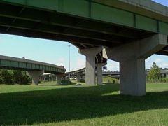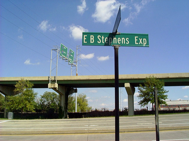 The Elton B. Stephens Expressway viaduct passes over the intersection of 5th Avenue N and 26th Street N south of the exchange with I-59/20 and Carraway Boulevard. 10/01/03