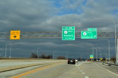 An uncommon layout on this overhead outlined the exit ramps from the SR 100/141 freeway at Greenville to SR 52 (Kennett Pike). The design was carbon copied with a new assembly installed by 2007. 03/28/04
