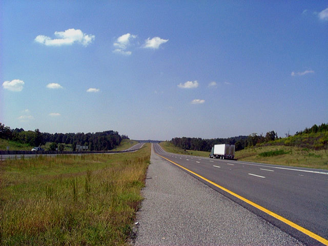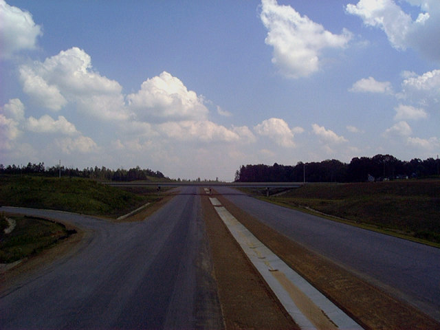 The temporary end of freeway at the Industrial Parkway interchange south of Jasper. The freeway was constructed with six overall lanes westward to Exit 63. 09/25/03