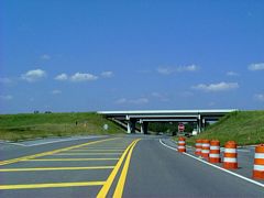 View of the unopened westbound travel lanes at the temporary beginning of Interstate 22 west within the diamond interchange at Exit 65. 09/25/03