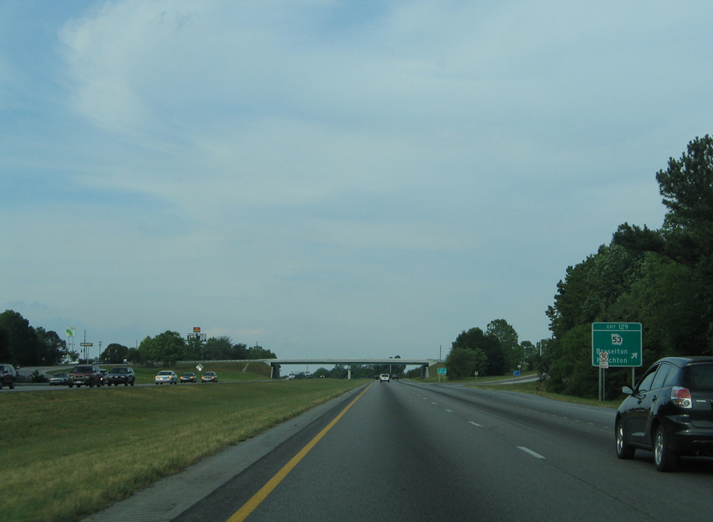 All signs with the narrow width Highway Gothic font for Interstate 85 north from Exit 115 to the South Carolina state line were replaced by 2013 or 2014. 05/28/05