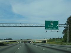 Expansion of I-85 north sees five through lanes here and two departing lanes for Sugarloaf Parkway. 05/28/05
