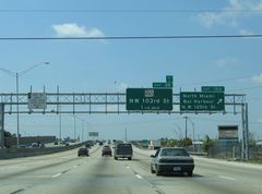 Exit 8A to NW 95th Street departed from I-95 south one quarter mile south of the NW 103rd Street overpass and this overhead sign. 05/16/08