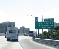 This ground level guide sign for Exit 1A referenced SW 25th Road in place of Rickenbacker Causeway. 12/28/03