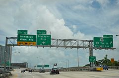 Exit 1B departs from Interstate 95 south at the three wye interchange with the Downtown Distributor. A condominium high rise was constructed along the west side of the viaduct between Flagler and SW 1st Streets (Florida 968) by 2014. 07/05/11
