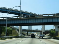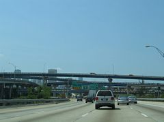 Flyovers spread into view as Interstate 95 kinks southeast through the Midtown Interchange. Had it been completed as originally envisioned, Interstate 75 would have reached its southern terminus here at this interchange. 05/16/08