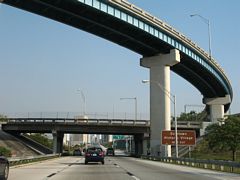 Modifications to the highest flyovers at the 36th Street Interchange lengthened the spans over the I-95 mainline to accommodate expansion of I-95 from six to ten overall lanes. 05/07/06