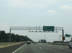 This was a typical sign bridge posted along the reversible HOV-3 roadway at slip ramps entering from the opposite direction of I-95. 07/01/05