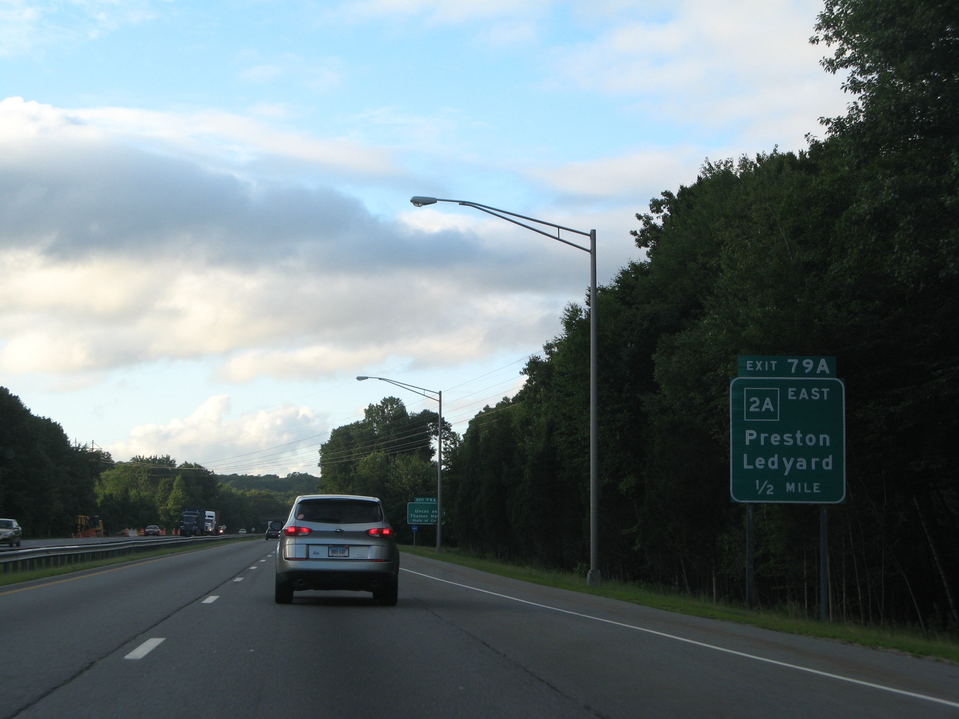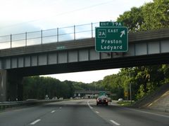 Entering the trumpet interchange (old Exit 79A) with Connecticut 2A east on I-395 north. 07/27/07