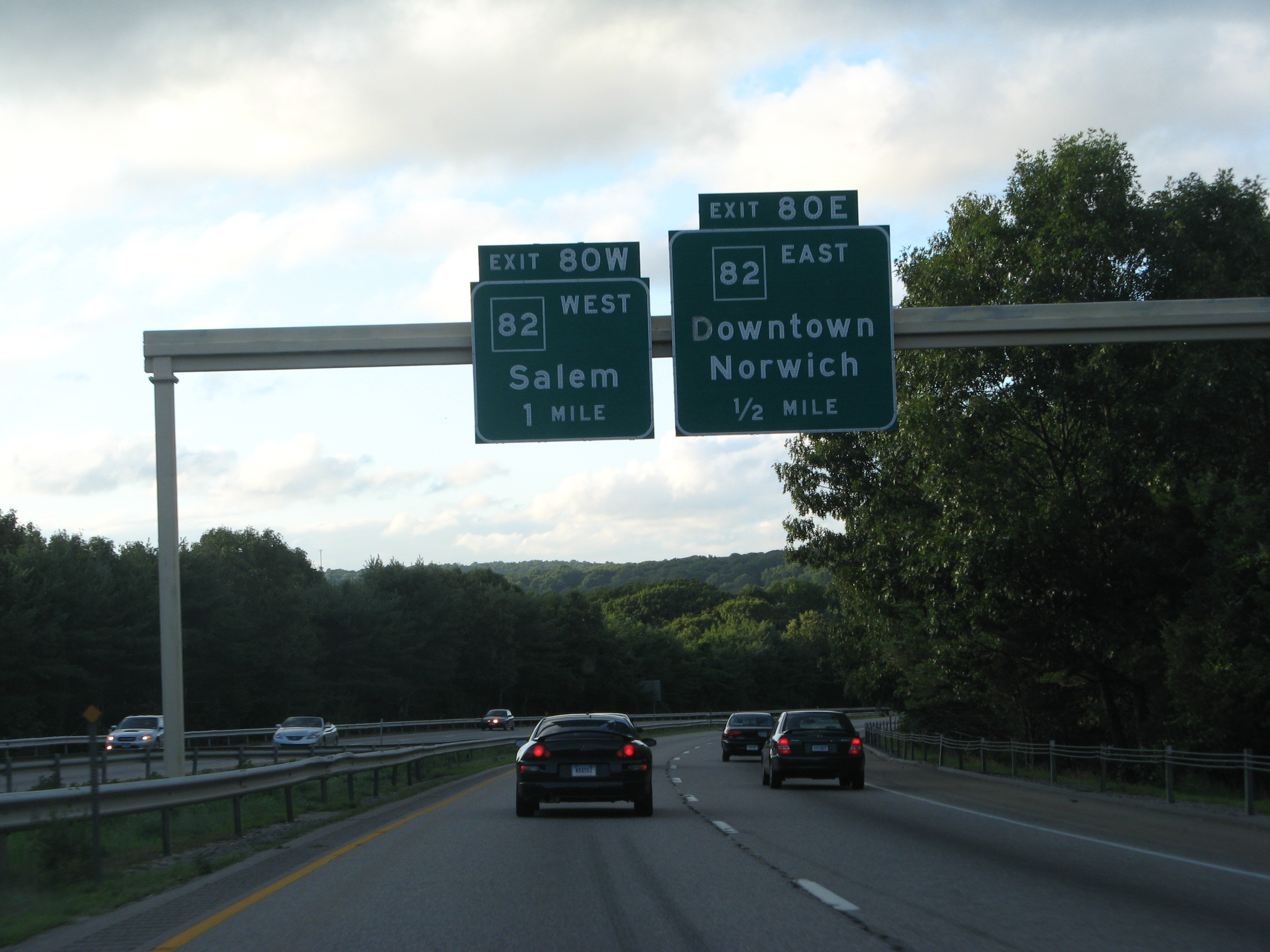 Since renumbered to Exit 11, old Exit 80E now carries traffic to both directions of Connecticut 82. 07/27/07