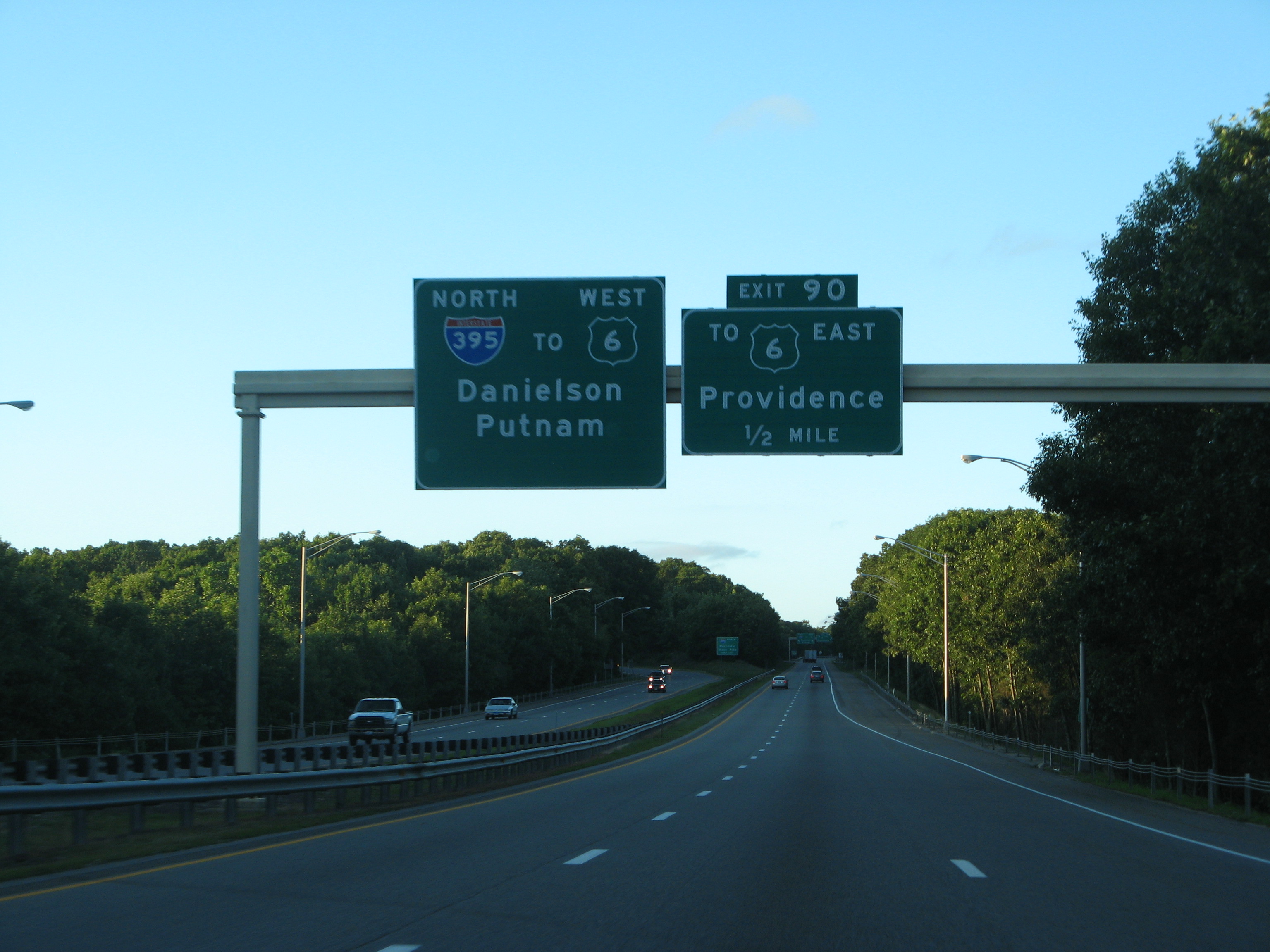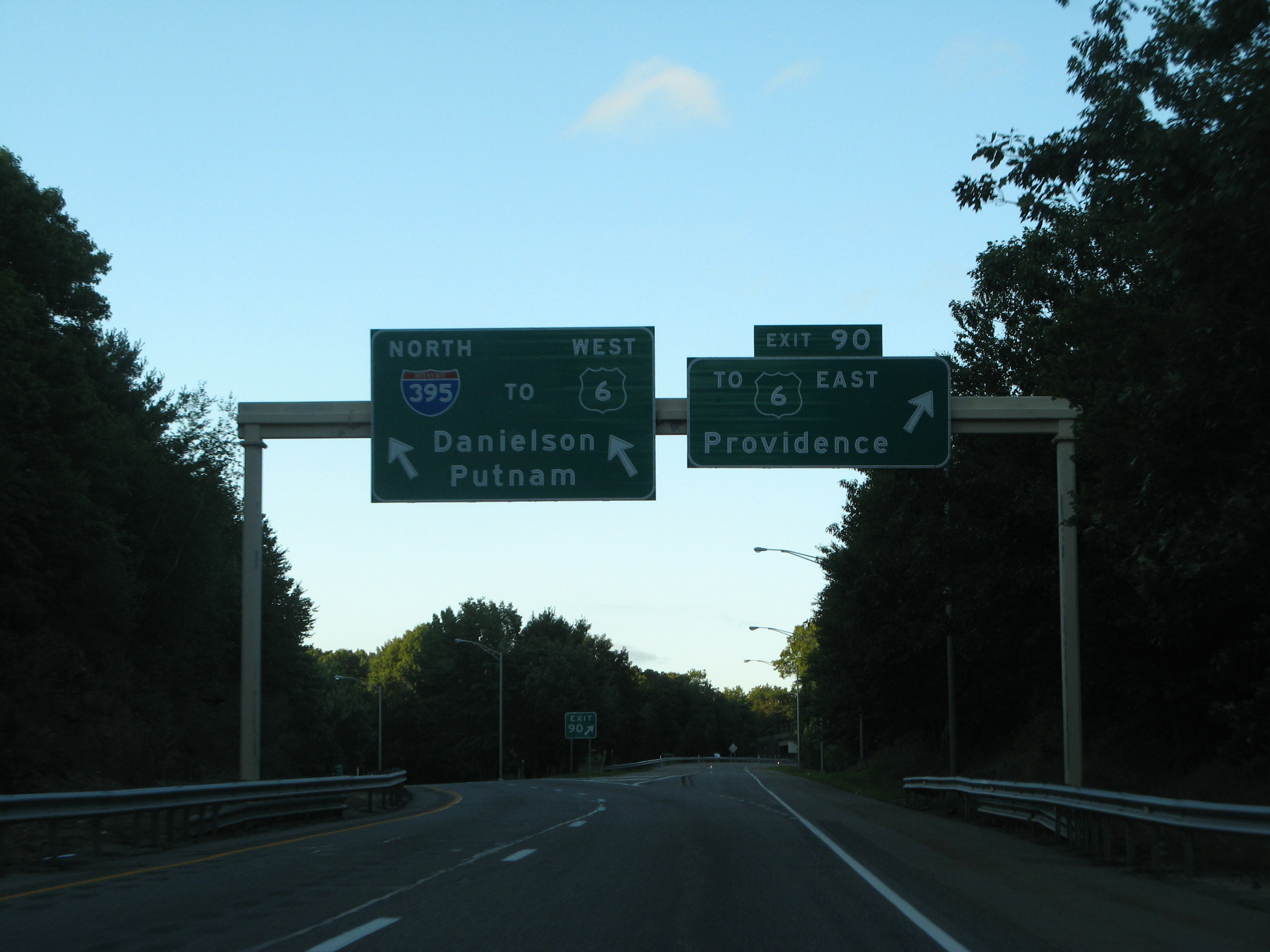 The Connecticut Turnpike ends at a wye interchange with U.S. 6 by the Rhode Island state line. The spur east from I-395 is unsigned Connecticut 695. 01/28/25