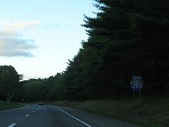 U.S. 6 meets Interstate 395 directly at a cloverleaf interchange in one mile. There is no access to eastbound, as the Turnpike spur to the state line handles that movement. 01/28/25