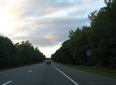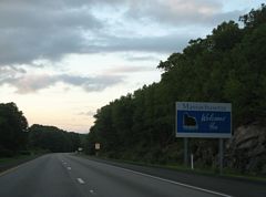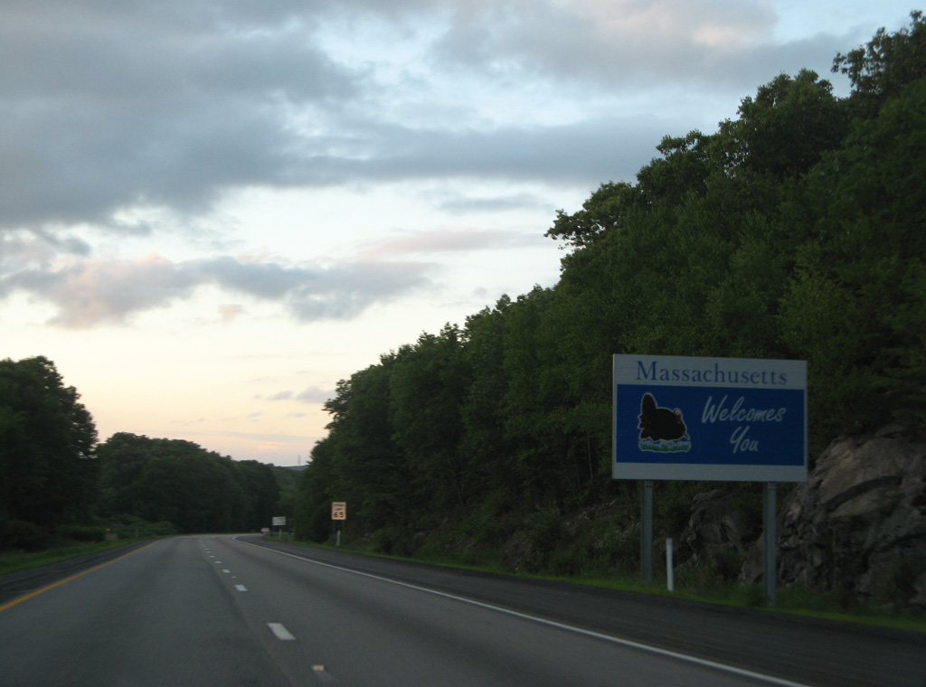 Welcome to Massachusetts sign posted to the immediate north of the state line on I-395 northbound. 01/28/25