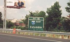 An original button copy sign for Exit 1B and Interstate 20 east. Columbia is 73 miles away. 08/05/00