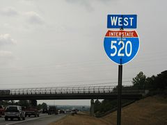 Reassurance marker for Interstate 520 west posted at the Glenn Hill Road overpass. This stretch is now six lanes wide. 06/01/07