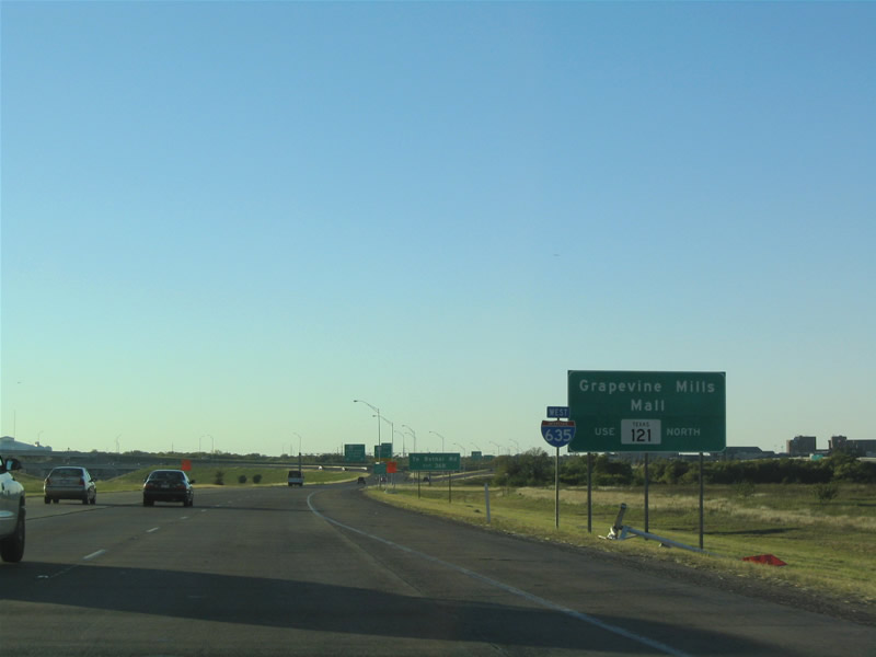 IH 635 westbound at IH 35E. Oklahoma City, a logical control point, is not mentioned here - but rather Denton, where 35E meets with 35W. 10/20/03