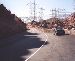 U.S. 93 continued toward a large power substation designed to distribute and transmit electricity generated by Hoover Dam to the western power grid. Customers of Hoover Dam's electricity include Southern California, Phoenix, Las Vegas, and the Intermountain West. 10/24/03