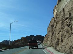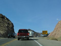 Leaving the bypass alignment, U.S. 93 remained narrow as it conformed to the landscape after the inspection station. On busy weekends, the trip from the dam to Boulder City could take an hour due to the high volume of traffic. 10/24/03