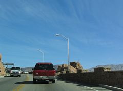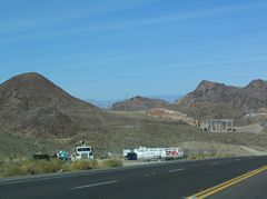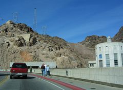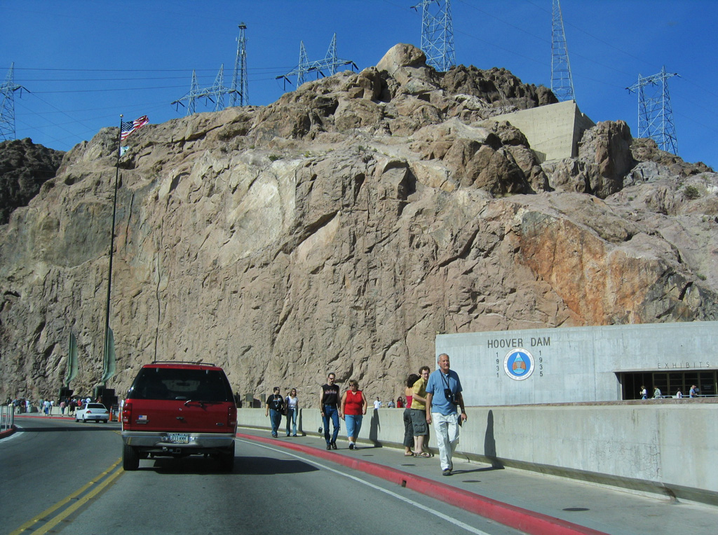 Traffic along U.S. 93 slowed as the highway entered the Hoover Dam area. Pedestrians were quite common at the parking areas, turnouts, and sidewalks along and adjacent to the dam. 10/24/03