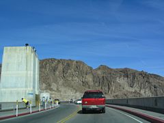 U.S. 93 north entered the Silver State of Nevada around the midpoint of Hoover Dam. Large clocks on the dam intake towers indicate the time difference between Mountain Standard Time (Arizona) and Pacific Time (Nevada). 10/24/03
