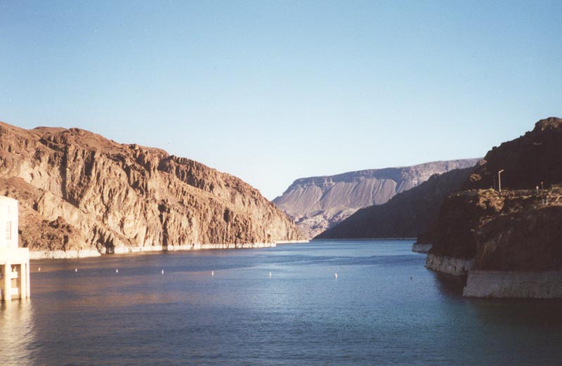 Hoover Dam holds back one of the largest reservoirs in the world: Lake Mead. Lake Mead covers a surface area of 247 square miles in parts of southeastern Nevada and northwestern Arizona. 10/24/03