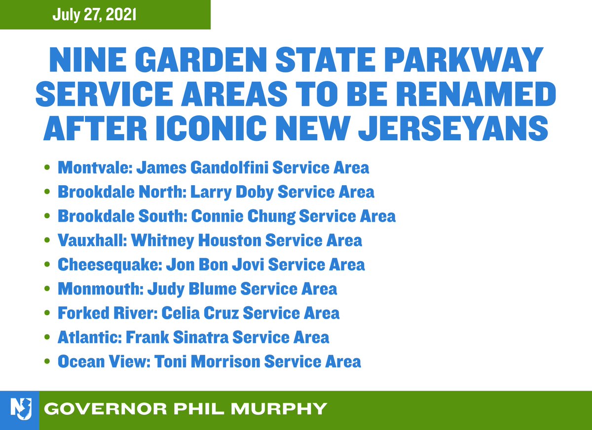 Connie Chung (the newscaster), huh?  Did she grow up in Newark?  IIRC Larry Doby (who's getting the service plaza opposite Chung's) grew up in Newark, but IIRC Chung was born in DC.  I first heard of Chung on my 1981 California vacation when she was anchoring on KNXT (now KCBS) channel 2 in LA, the station where IIRC she met Maury Povich, who she married.