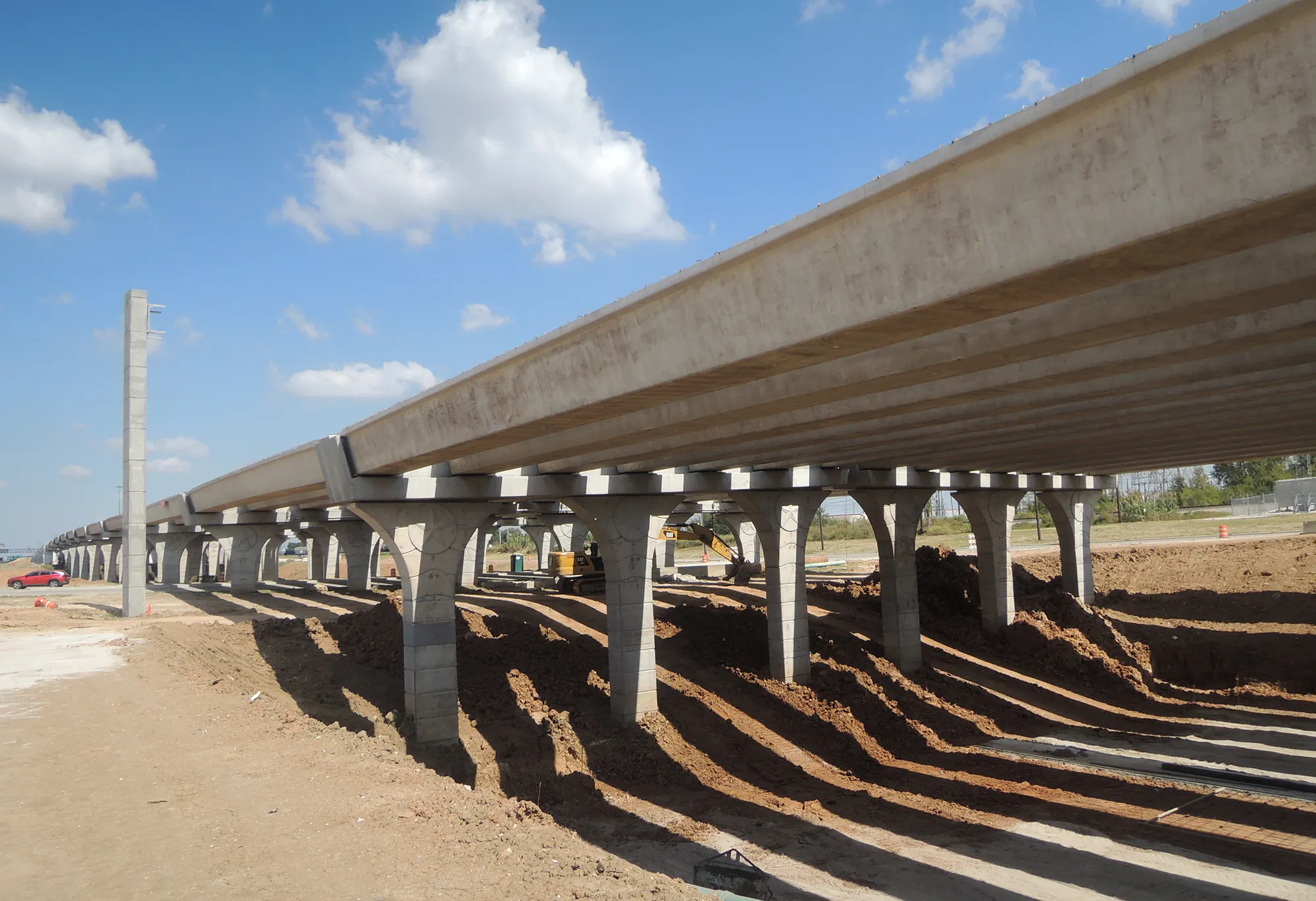 This view is near the University of Houston. Retention ponds are being build under the long elevated structure. Full size