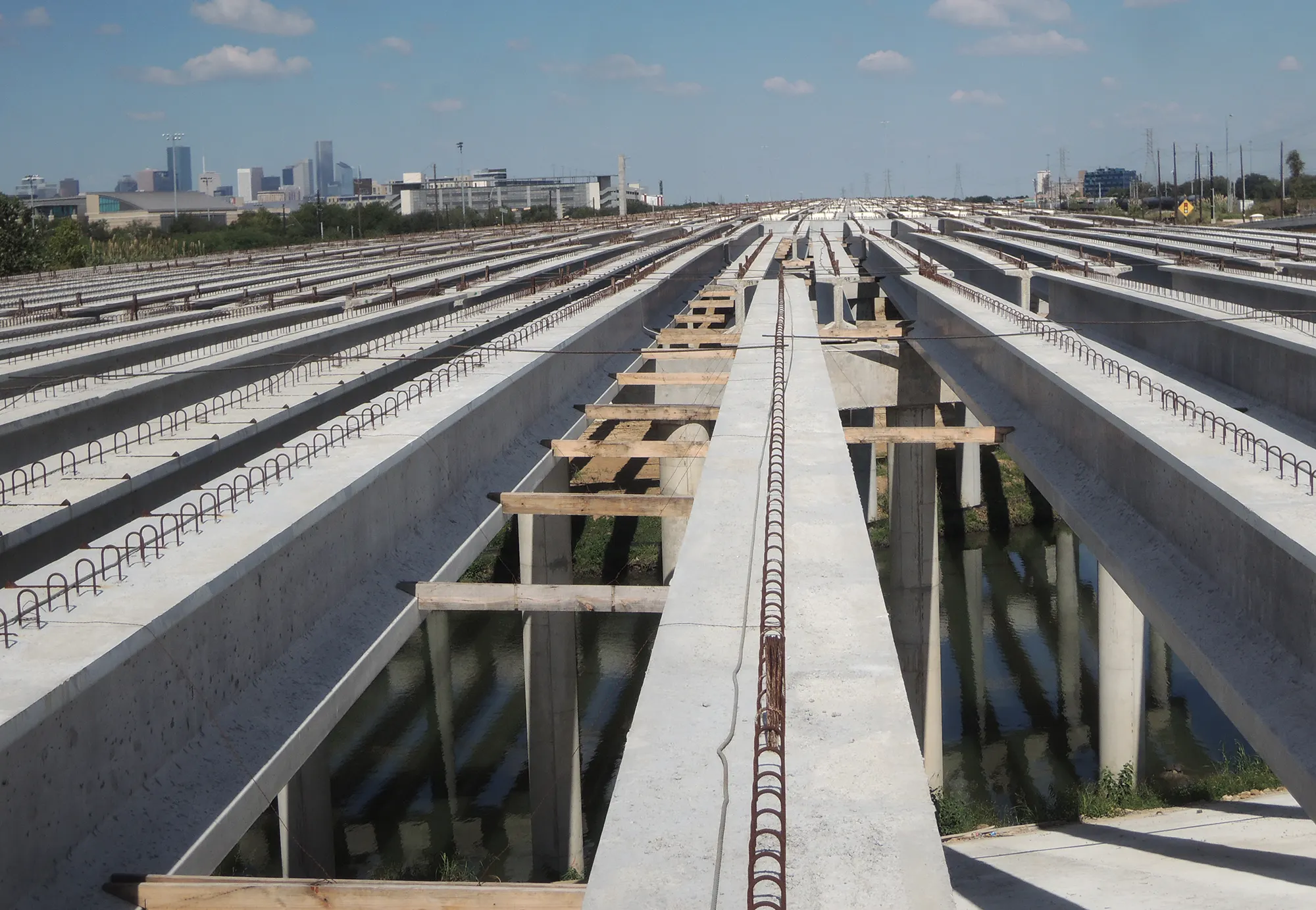 This view looks north at Braes Bayou, with all the beams in place. Full size