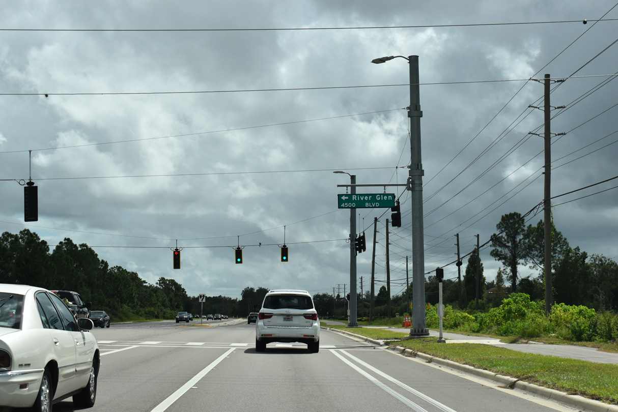 River Glen Boulevard meets CR 54 at a signalized intersection across from a future suburban boulevard leading south to the Valencia Ridge development and SR 56.