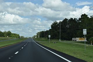SR 44 heads northwest from Lecanto to a diamond interchange (Exit 68) with SR 589 (Suncoast Parkway).