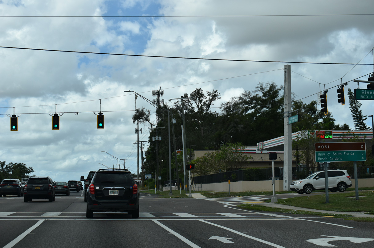 A mid-block pedestrian signal was added along Fowler Avenue at 52nd Street in 2025 as part of an $8.1 million repaving project along SR 582 between 51st Street and Riverhills Drive (FDOT, 2025).