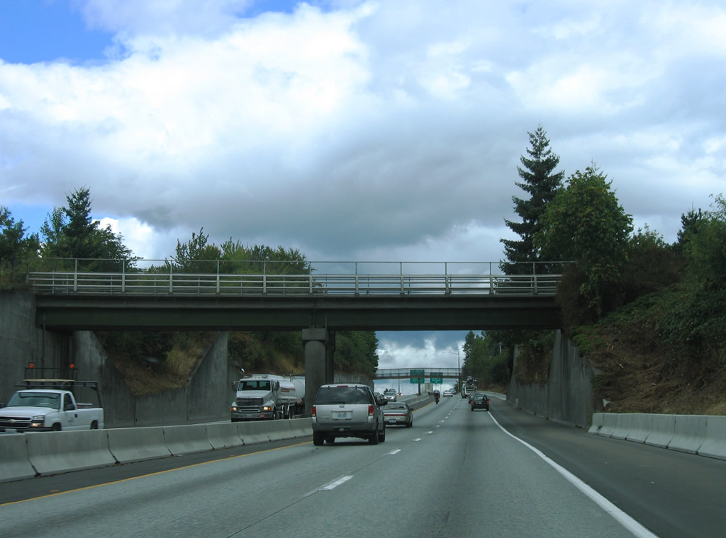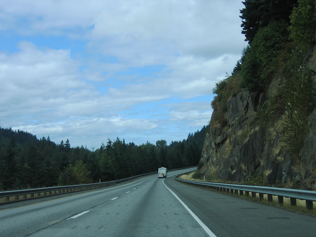 Interstate 5 and parallels Old Samish Road and Chuckanut Creek in a valley north of Chuckanut Mountain. This is the most mountainous section of Interstate 5 within the Evergreen State.