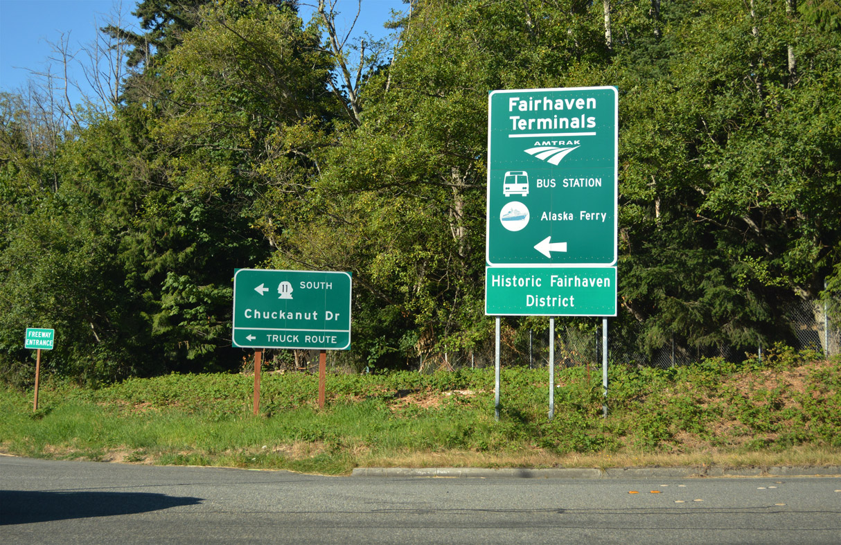 SR 11 follows Chuckanut Drive (former U.S. 99 Alternate) south from 12th Street to Chuckanut Village along Chuckanut Bay. The Fairhaven Transportation Center is located along Harris Avenue west of 12th Street.