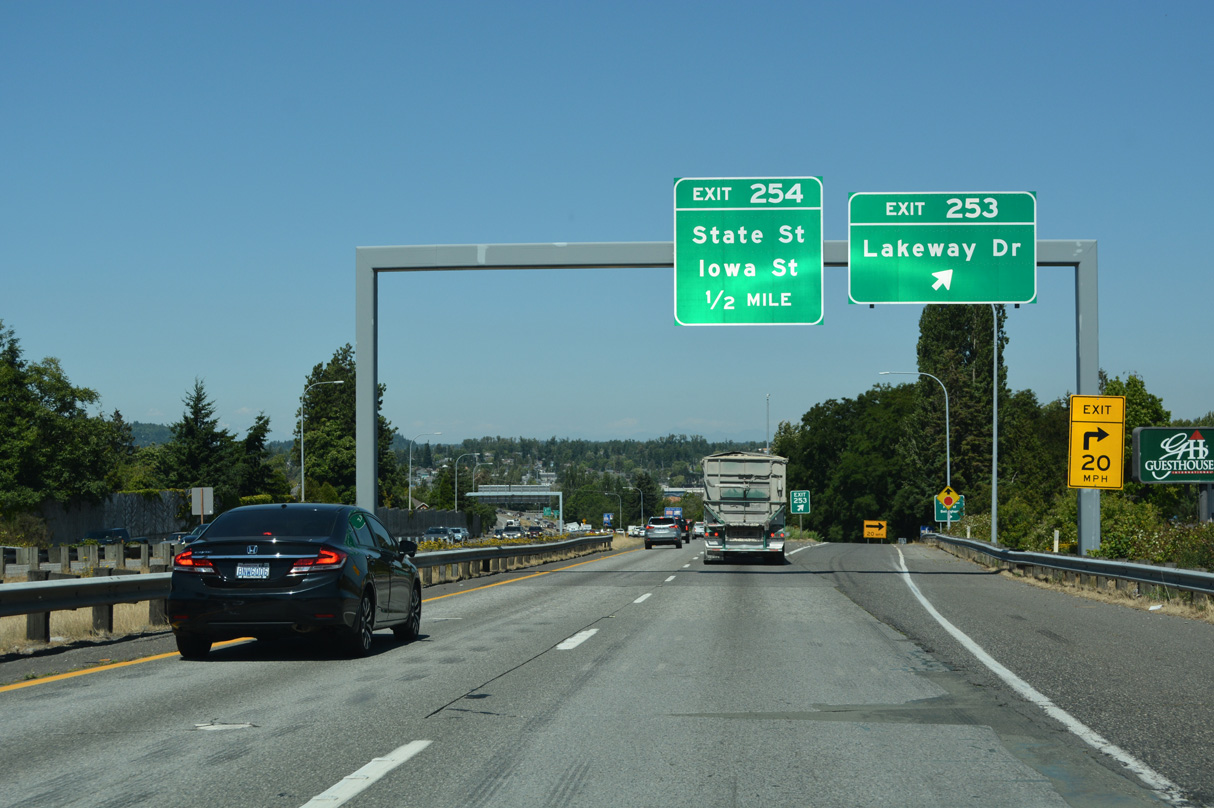 Lakeway Drive west from forthcoming Exit 253 becomes Holly Street (Old U.S. 99) northwest to Downtown Bellingham.