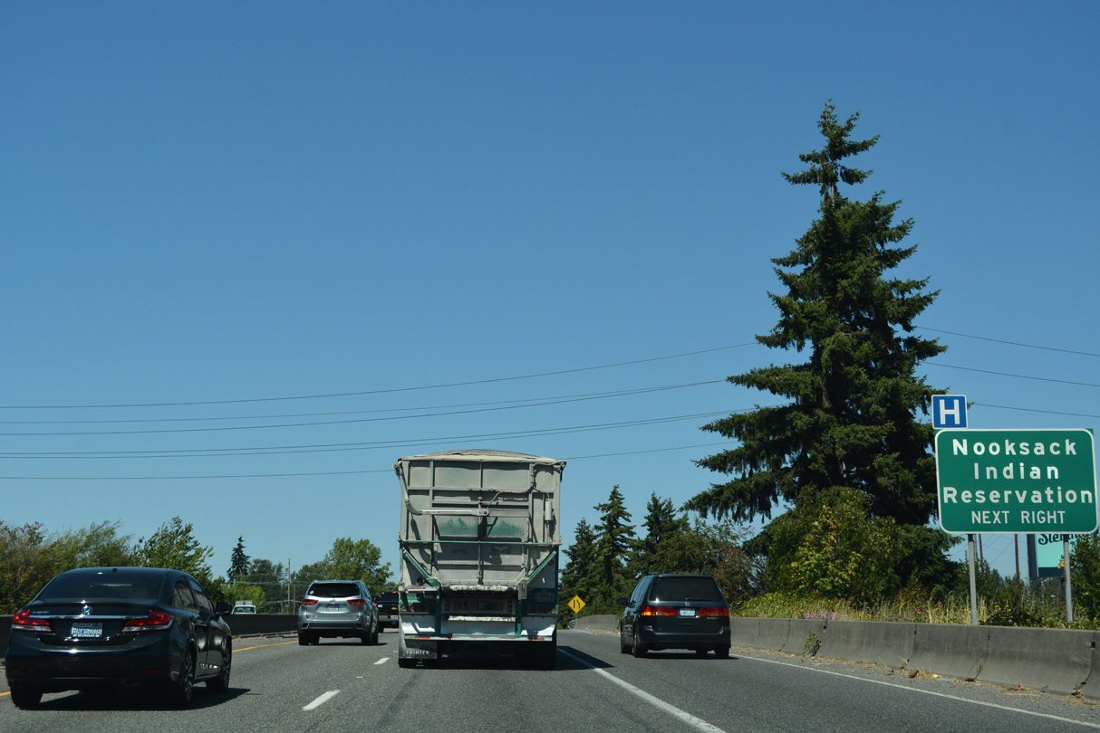 Slater Road continues west to Haxton Way south for the Lummi Indian Reservation and ferry to Lummi Island.