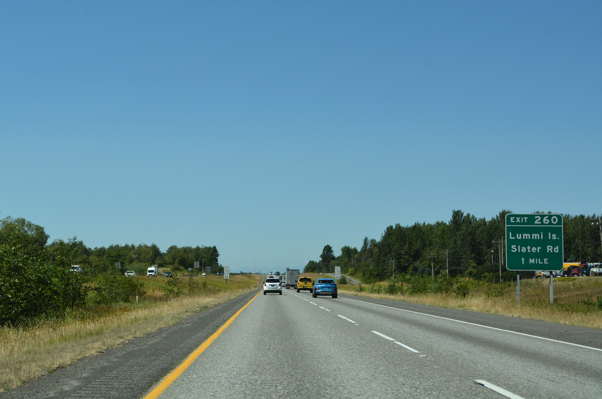 Slater Road stems west from Northwest Drive to a dumbbell interchange with Interstate 5 at Exit 260.