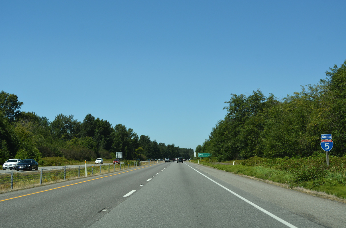 Advancing north along the east side of Lake Samish, Interstate 5 continues nine miles to Bellingham.