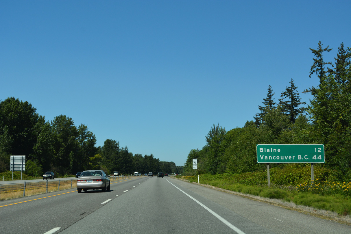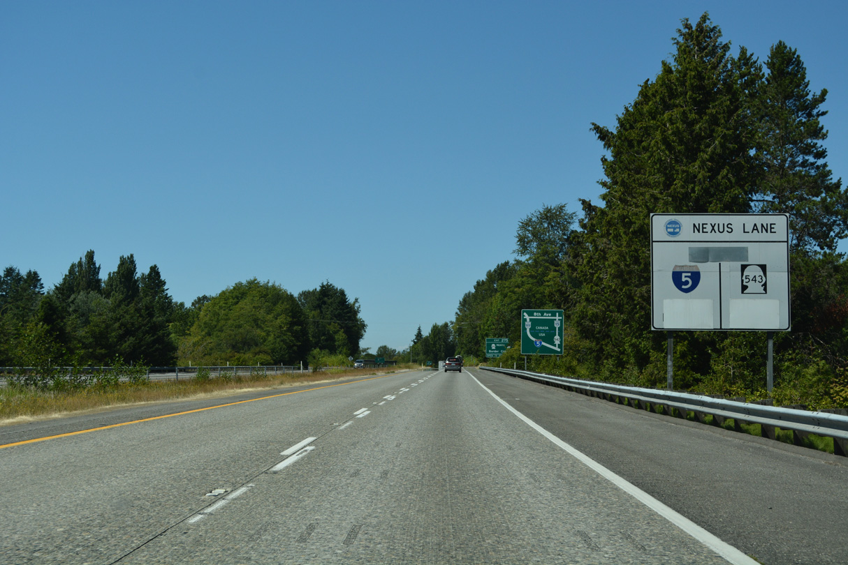 I-5 north becomes British Columbia Highway 99, a freeway northwest to Delta and Richmond. SR 543 becomes British Columbia Highway 15, an arterial north to Trans Canada Highway 1 near Surrey.