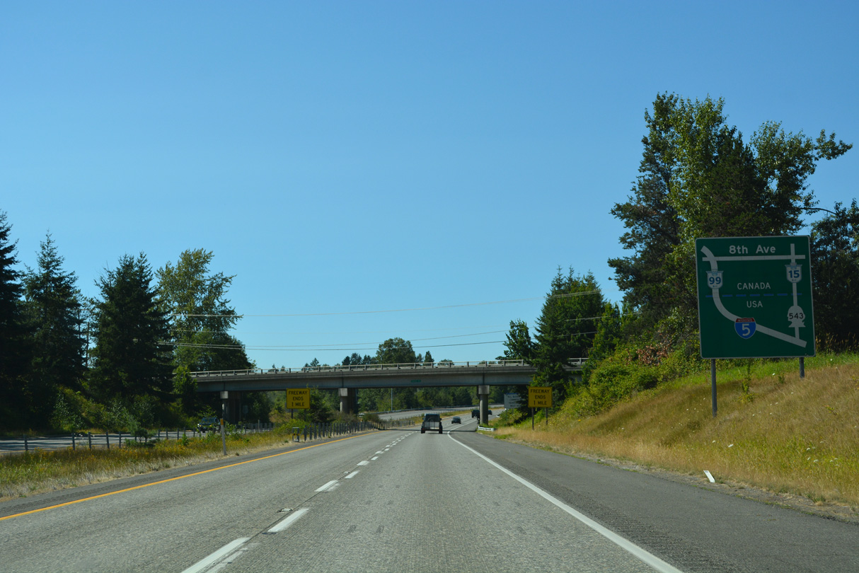 Interstate 5 north reaches Exit 276 to SR 548 (Peace Portal Drive) south and D Street east to SR 543 and Lincoln Park.