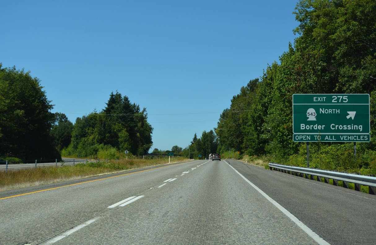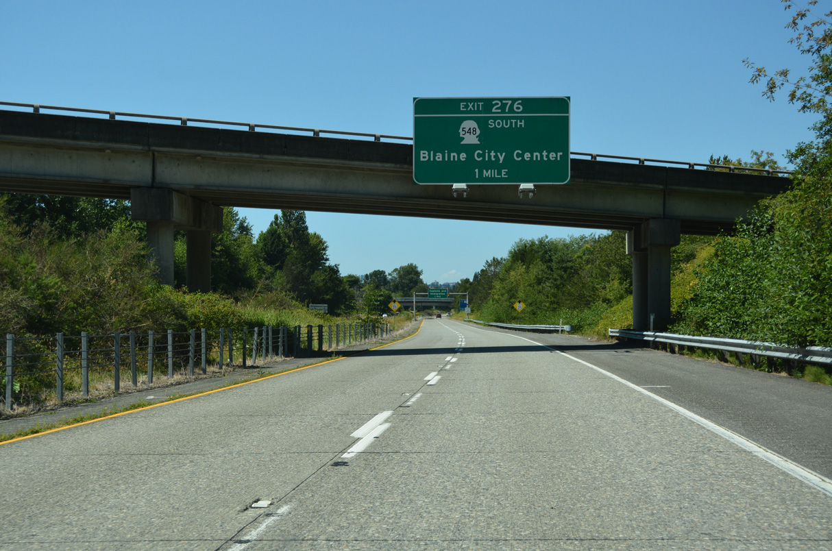 SR 548 branches 1.09 miles north from a wye interchange (Exit 275) with Interstate to the Canadian border crossing with B.C. Highway 15.