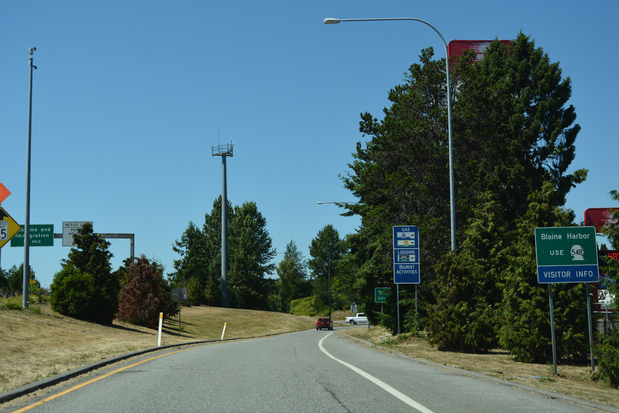 SR 548 (Peace Portal Drive) concludes north of Downtown Blaine at a dumbbell interchange (Exit 276) with I-5. U.S. 99 originally followed Peace Portal Drive to D Street and a turn into Peace Arch State Park.